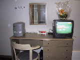 | 机 | 部屋には、机があり、加湿器、テレビ、引出しがある。テレビもTVカードの使用は必要なく、見放題でした。 | ![]() |
