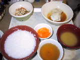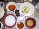 | 2001/3/27 | 朝、血液検査。結果に問題がなければ、常食になる予定。 看護婦さんから、パンはどうかと聞かれる。昼食の主食をパンにして貰うことにした。パンは大丈夫なのかア? 昼:食パン2枚(りんごジャム)、オムレツ、豆腐とにんじんの煮物 |