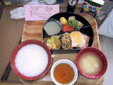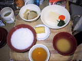 | 2001/3/27 | 朝、血液検査。結果に問題がなければ、常食になる予定。 看護婦さんから、パンはどうかと聞かれる。昼食の主食をパンにして貰うことにした。パンは大丈夫なのかア? 昼:食パン2枚(りんごジャム)、オムレツ、豆腐とにんじんの煮物 |